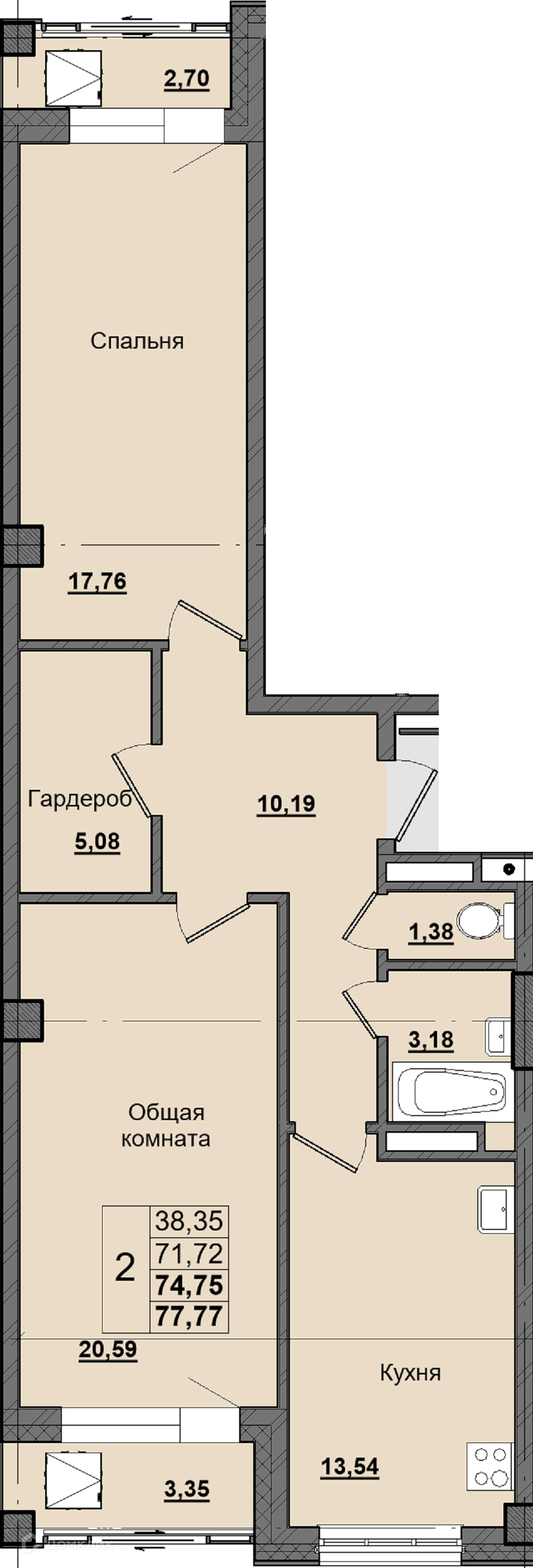 Площади квартир