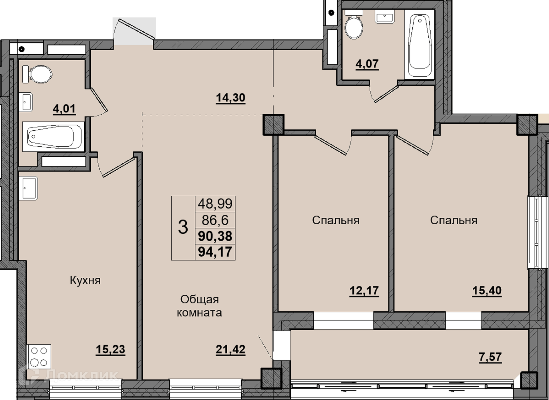 Площади квартир