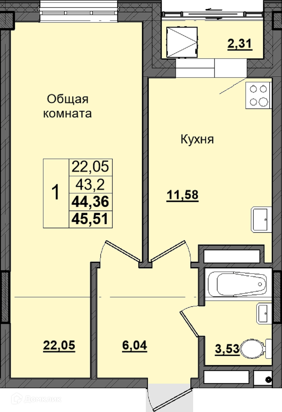 Площади квартир