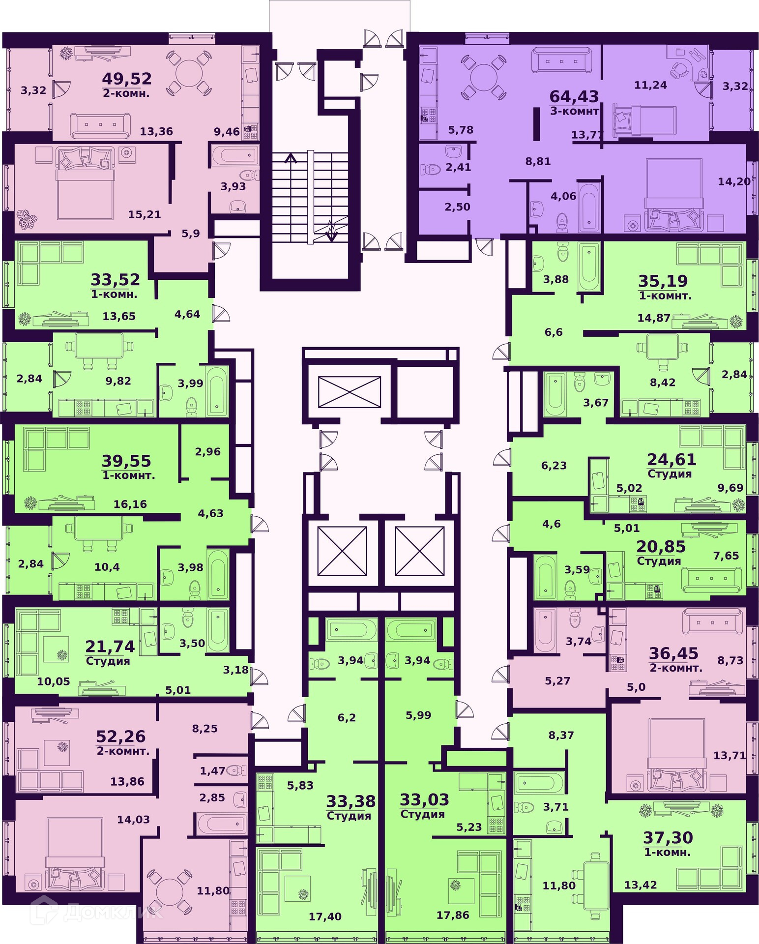 21.74 - 73.52 м²
