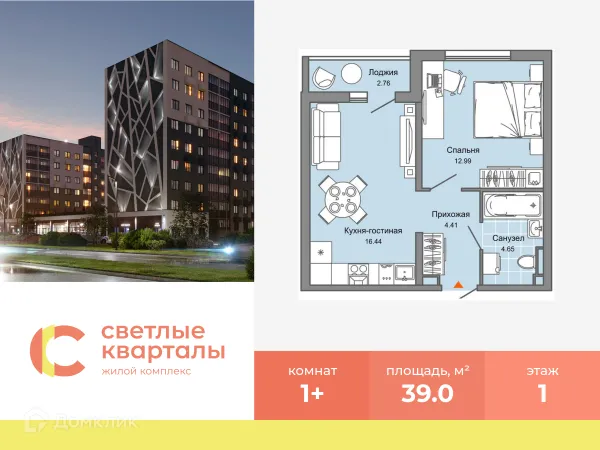 1 комн. квартира в Ульяновске в ипотеку от 32 703 руб/месяц