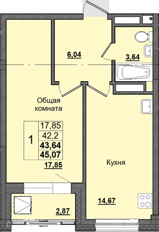 1 комн. квартира в Якутске в ипотеку от 60 782 руб/месяц