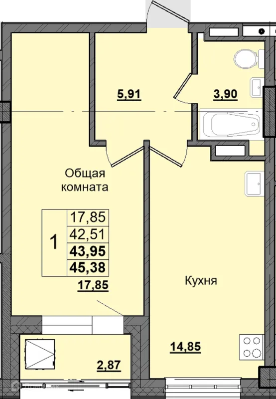 1 комн. квартира в Якутске в ипотеку от 50 473 руб/месяц
