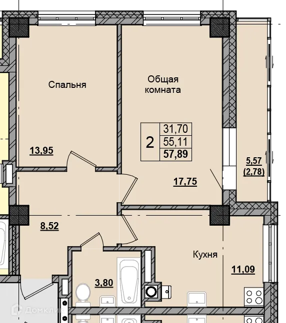 2 комн. квартира в Якутске в ипотеку от 65 769 руб/месяц