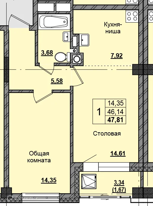 1 комн. квартира в Якутске в ипотеку от 58 815 руб/месяц