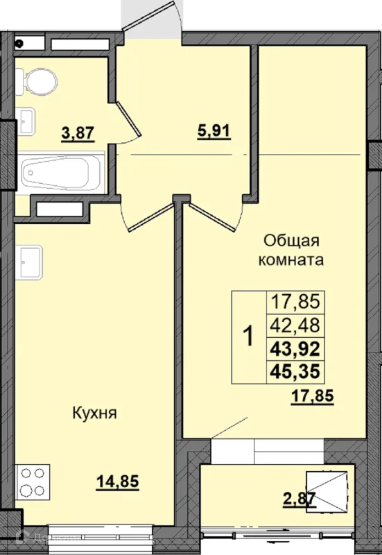 1 комн. квартира в Якутске в ипотеку от 57 452 руб/месяц
