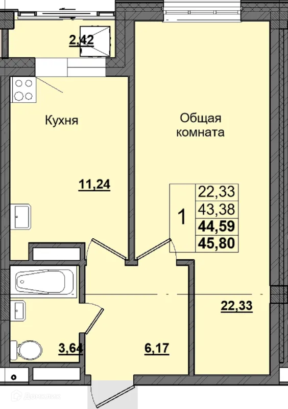 1 комн. квартира в Якутске в ипотеку от 59 980 руб/месяц