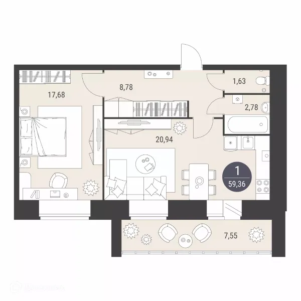 1 комн. квартира в ЖК ЖД по ул Фестивальная поз. 42