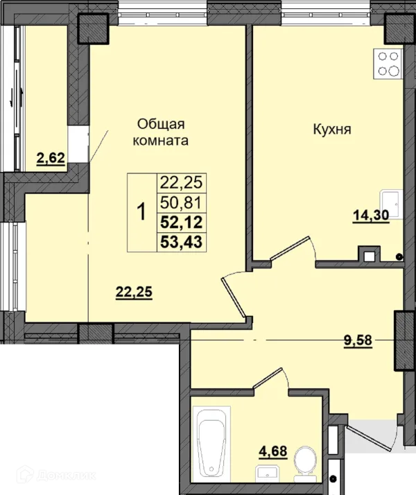 1 комн. квартира в Якутске в ипотеку от 53 593 руб/месяц