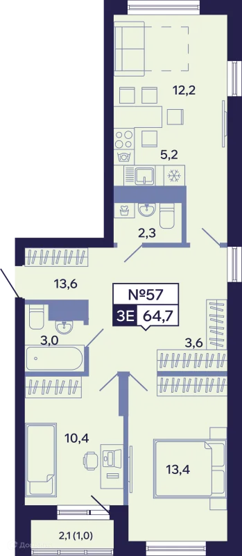 2 комн. квартира в Якутске в ипотеку от 68 975 руб/месяц